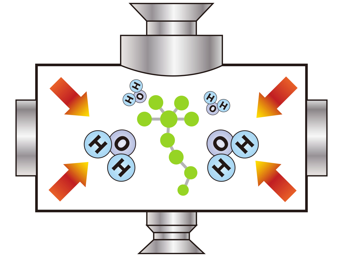 水が亜臨界水になると、超高速で飛び回り有機物を一瞬で加水分解します。